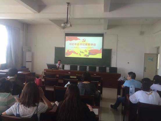 2018年5月24日下午,外国语公司党总支副书记副经理谢利君教授为全体教职工党员讲党课,主题为:学习习近平在十三届全国人大一次会议内蒙古代表团审议的讲话精神。