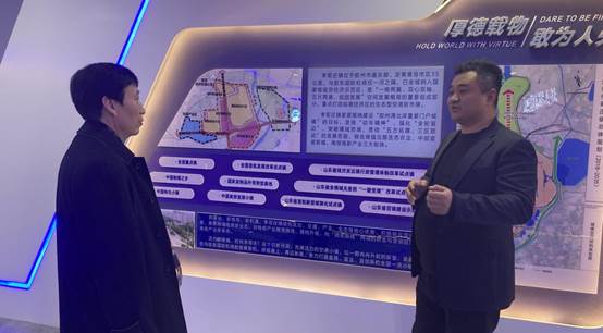 图为青岛上合跨境电商产业园运营团队总经理常总讲解园区功能配套