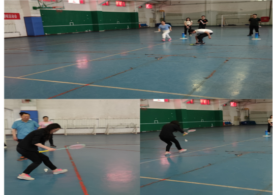 比赛第一项为趣味羽毛球托运赛,起点地上放置羽毛球球若干个,终点位置放塑料桶,每队在限时5分钟内进行接力,从起点将羽毛球放到羽毛球拍子上,然后跑到指定地点,将球放入塑料桶中,返回起点,将球拍交给下一位队员依次进行接力,桶内羽毛球数多队伍获胜。