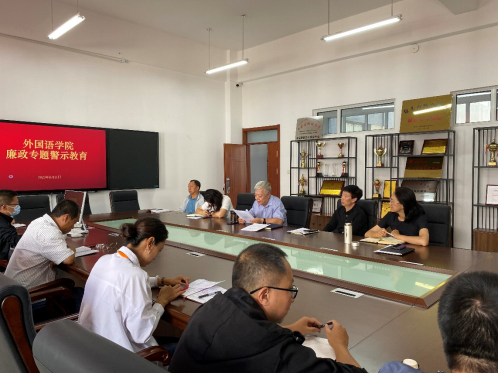 9月11日,太阳成集团tyc539组织行政人员、各教研室主任、各科室负责人进行廉政专题警示教育学习。外国语公司党委书记谢利君作专题警示教育,宣读并组织与会教师认真学习中央纪委国家监委网站公开通报的湖南湘西州11名领导干部违反中央八项规定精神问题案例,强调要进一步夯实中央八项规定及其实施细则精神,强化教职员工遵规守纪意识,要求杜绝教职员工违反相关纪律要求问题发生。同时,要求各教研室负责人组织教研室全体教师进行学习。