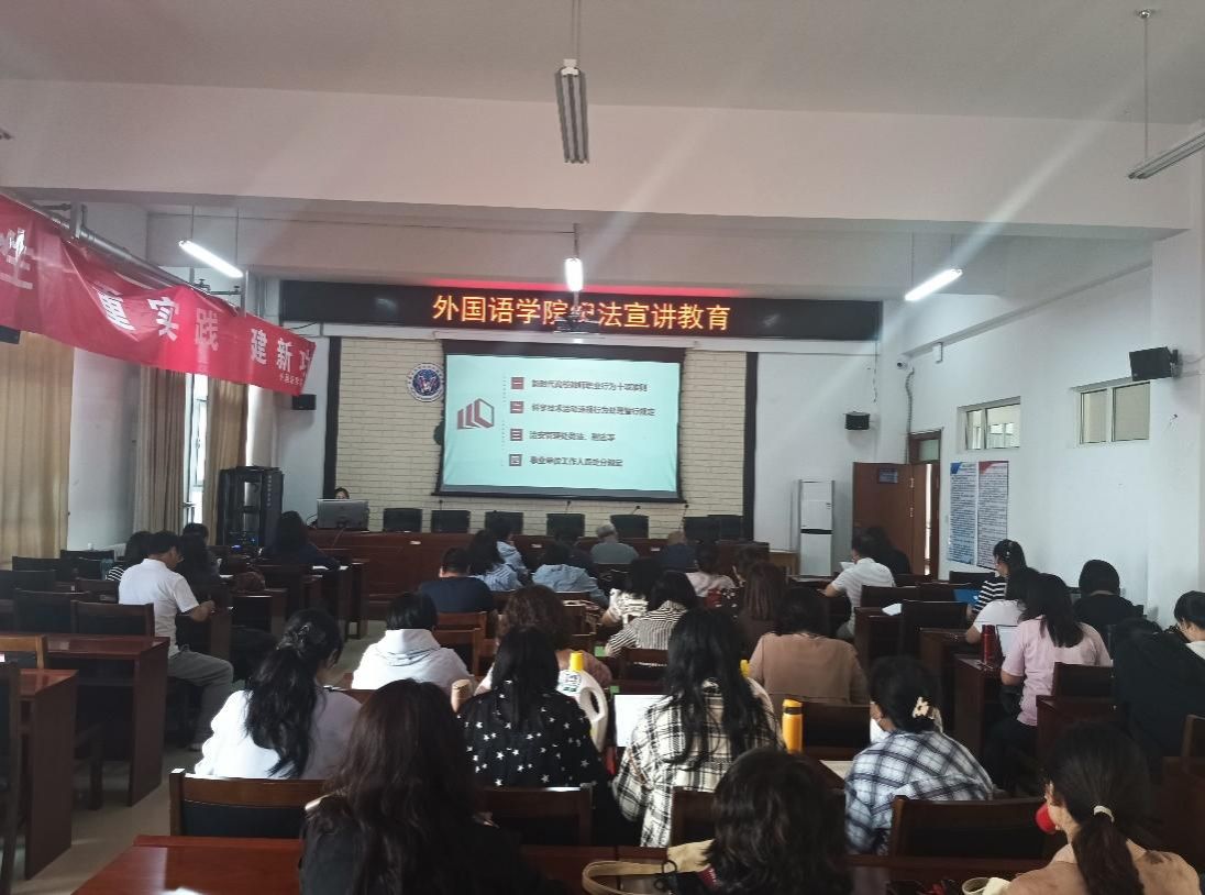 为了进一步增强全体教师的法治意识,太阳成集团tyc539于5月9日下午16:20组织全体教职工开展了纪法宣讲教育活动,邀请文法公司李硕老师进行了题为《高校教师基本法律常识》的讲座。本次活动旨在通过宣讲法律法规,使教师们更好地理解和遵守国家的法律法规,提升教师的法治素养,增强法律意识,强化公司的纪律建设,营造风清气正的校园环境。
