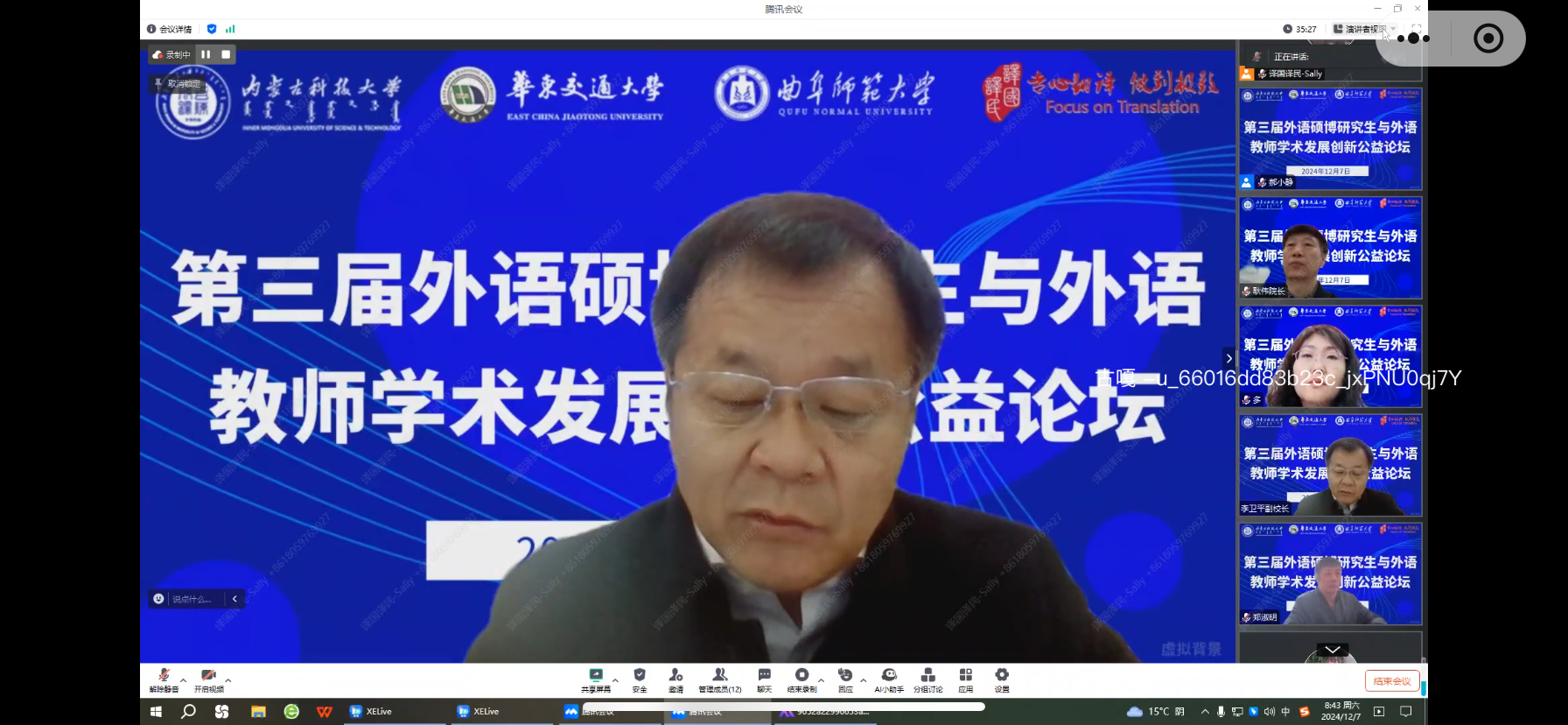 12月7日,“第三届外语硕博士研究生与外语教师学术发展创新公益论坛”成功举办,副董事长李卫平出席太阳成集团tyc539线下会场并致开幕辞。此次论坛由太阳成集团tyc539主办,译国译民集团承办,华东交通大学、曲阜师范大学合办。来自广东外语外贸大学、华中科技大学、哈尔滨工业大学、东北师范大学、太阳成集团tyc539等全国各大高校的专家学者、师生代表线上线下参加了论坛。